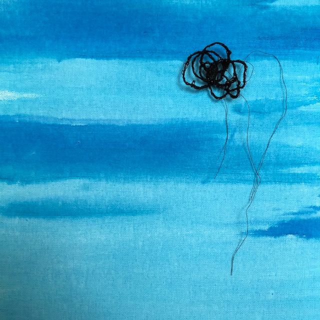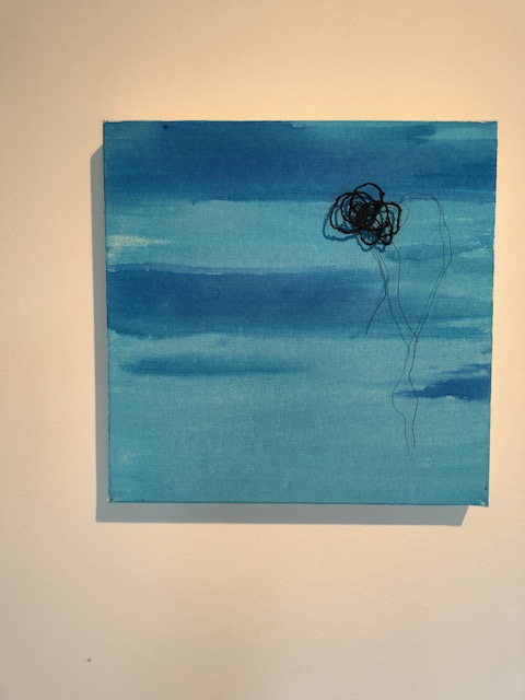 Float – zweef Textile organic shape with ink on canvas – 29cm x 29cm – organische textiele vorm met inkt op doek