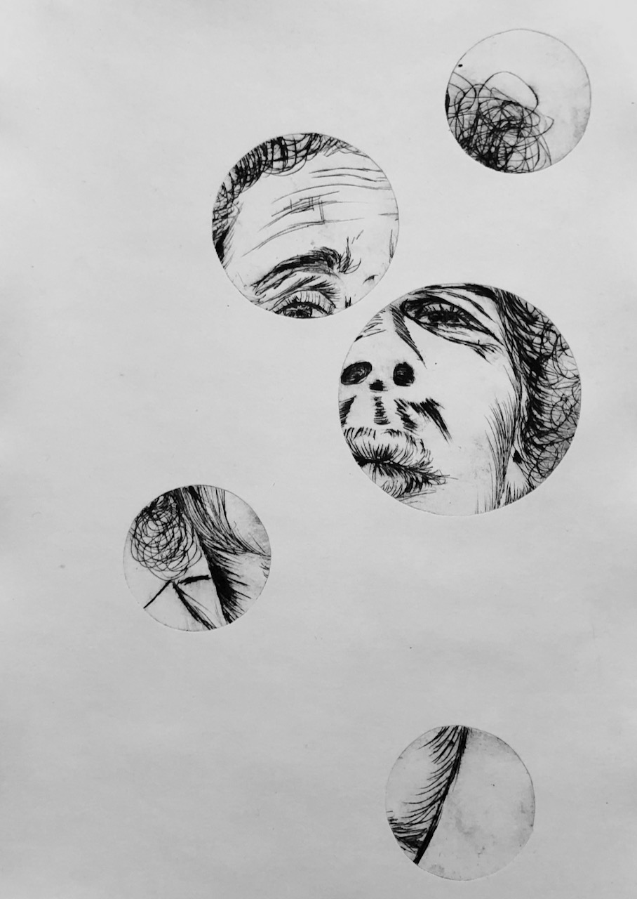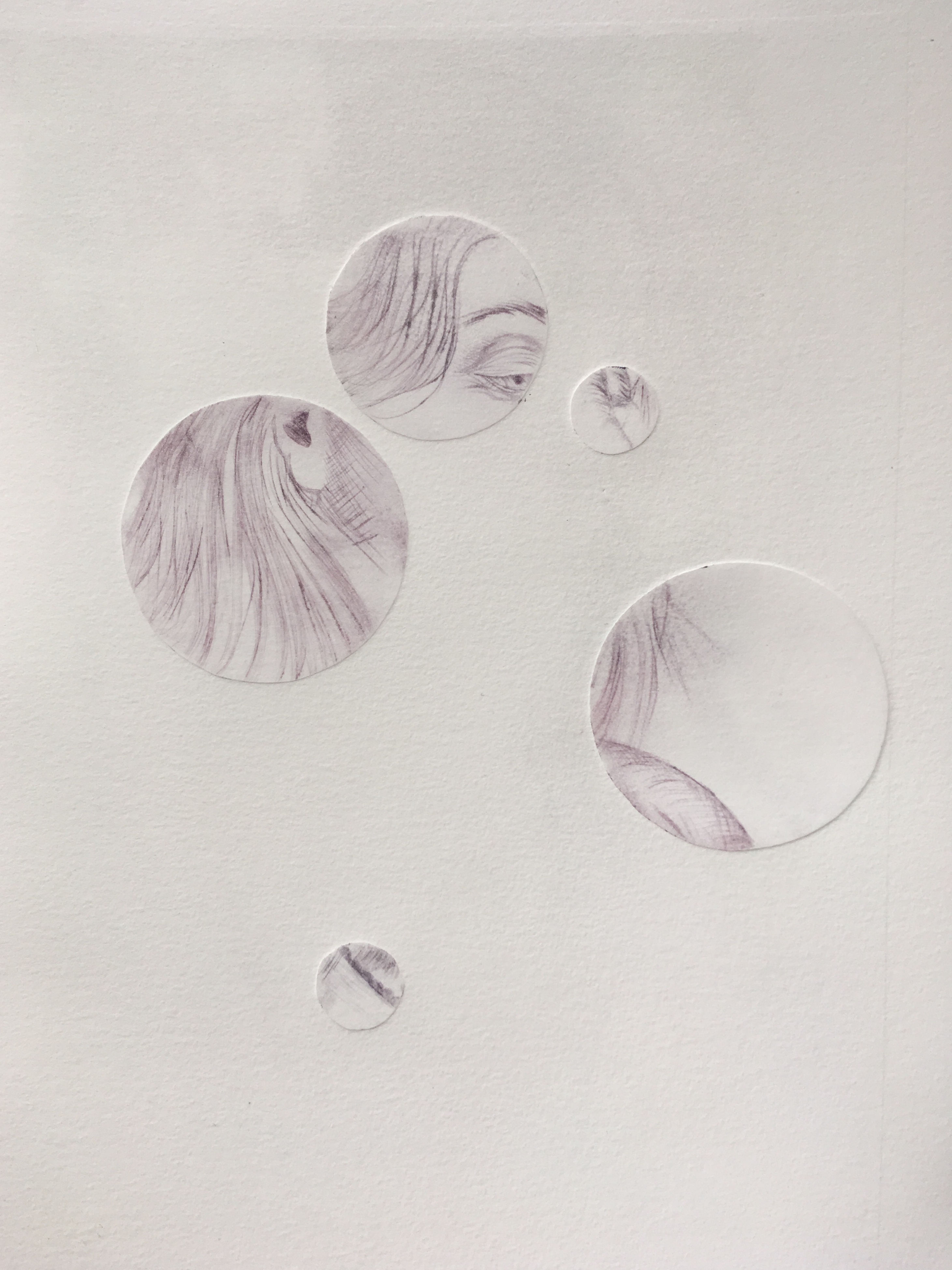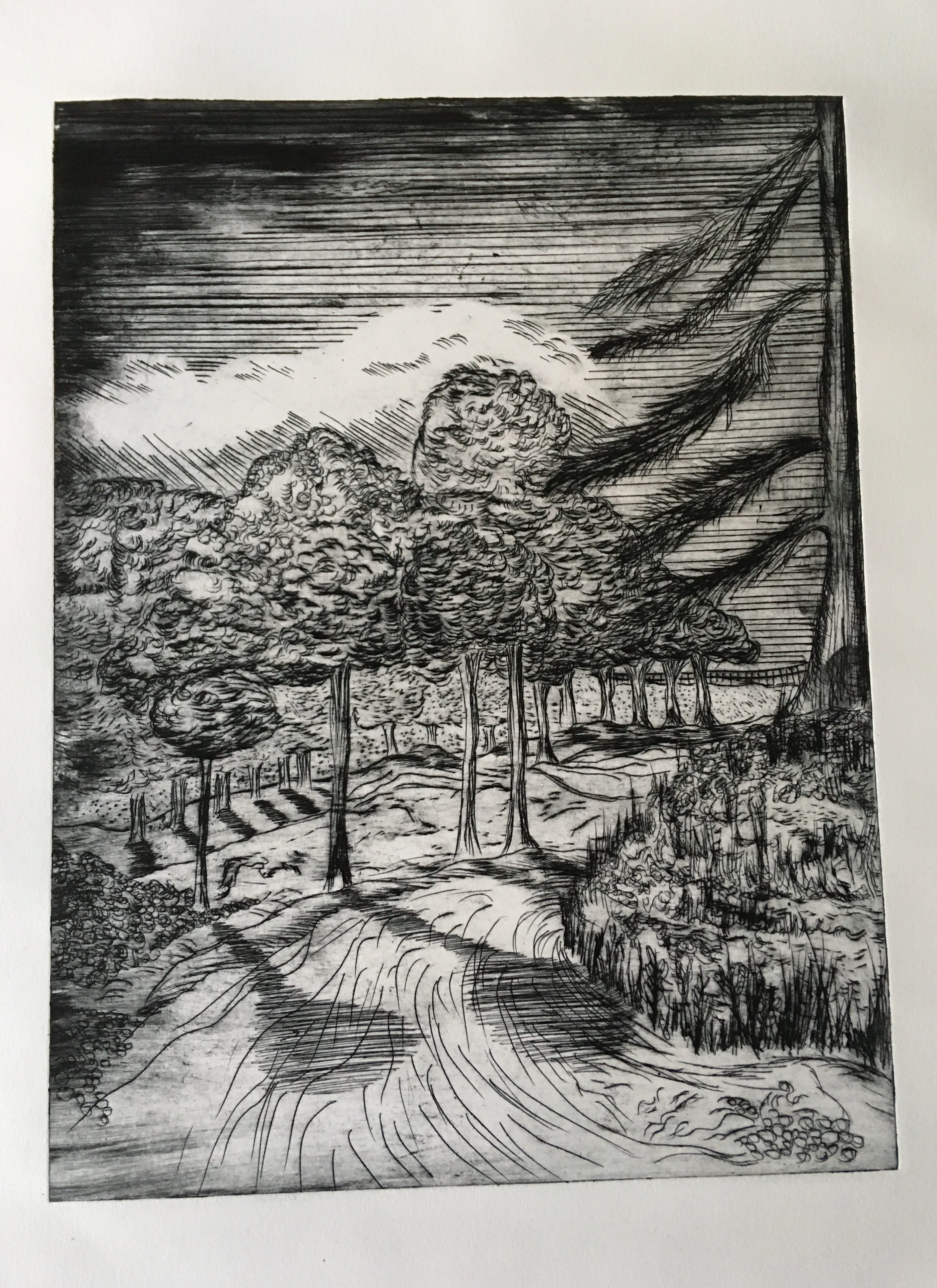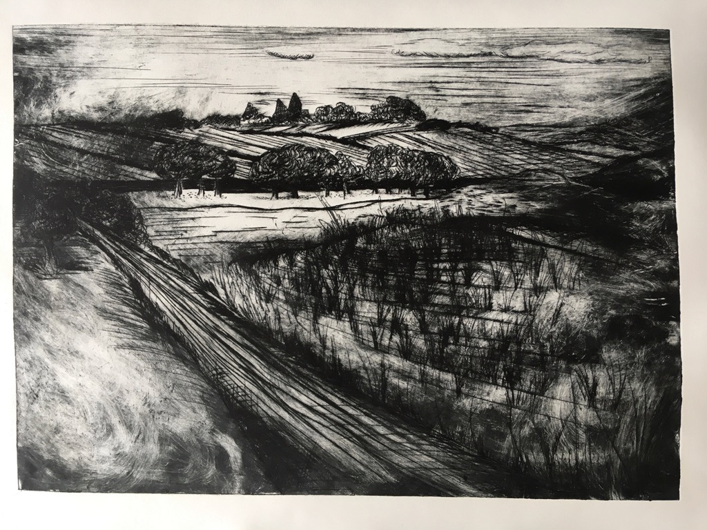 Etsen staat dicht bij tekenen; toch geeft de mogelijkheid om tijdens het drukproces te spelen met toon en kleur het een geheel nieuwe dimensie. Recent ben ik begonnen met experimenteren met lagen en het verkennen van manieren om andere technieken te combineren met het etsen.