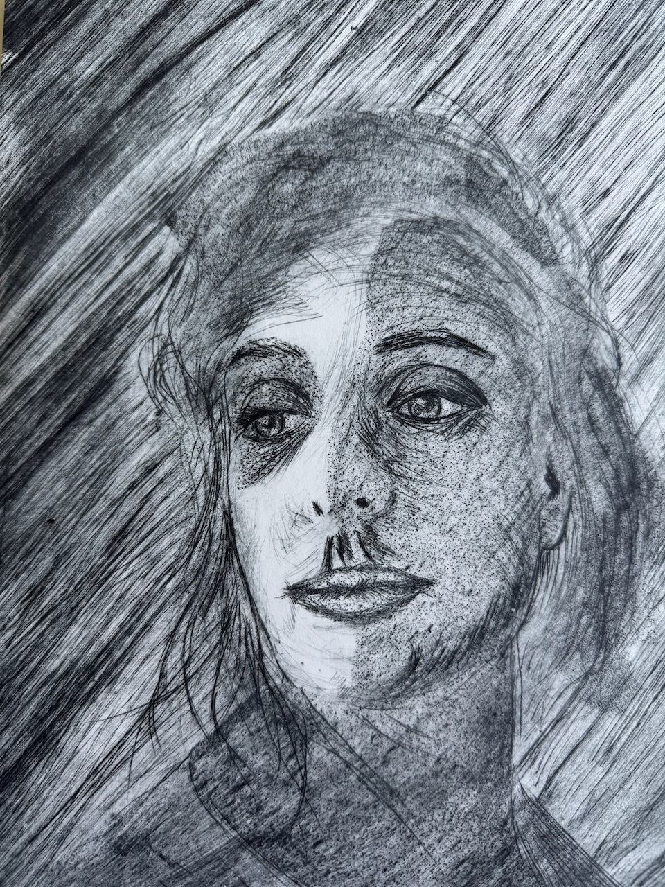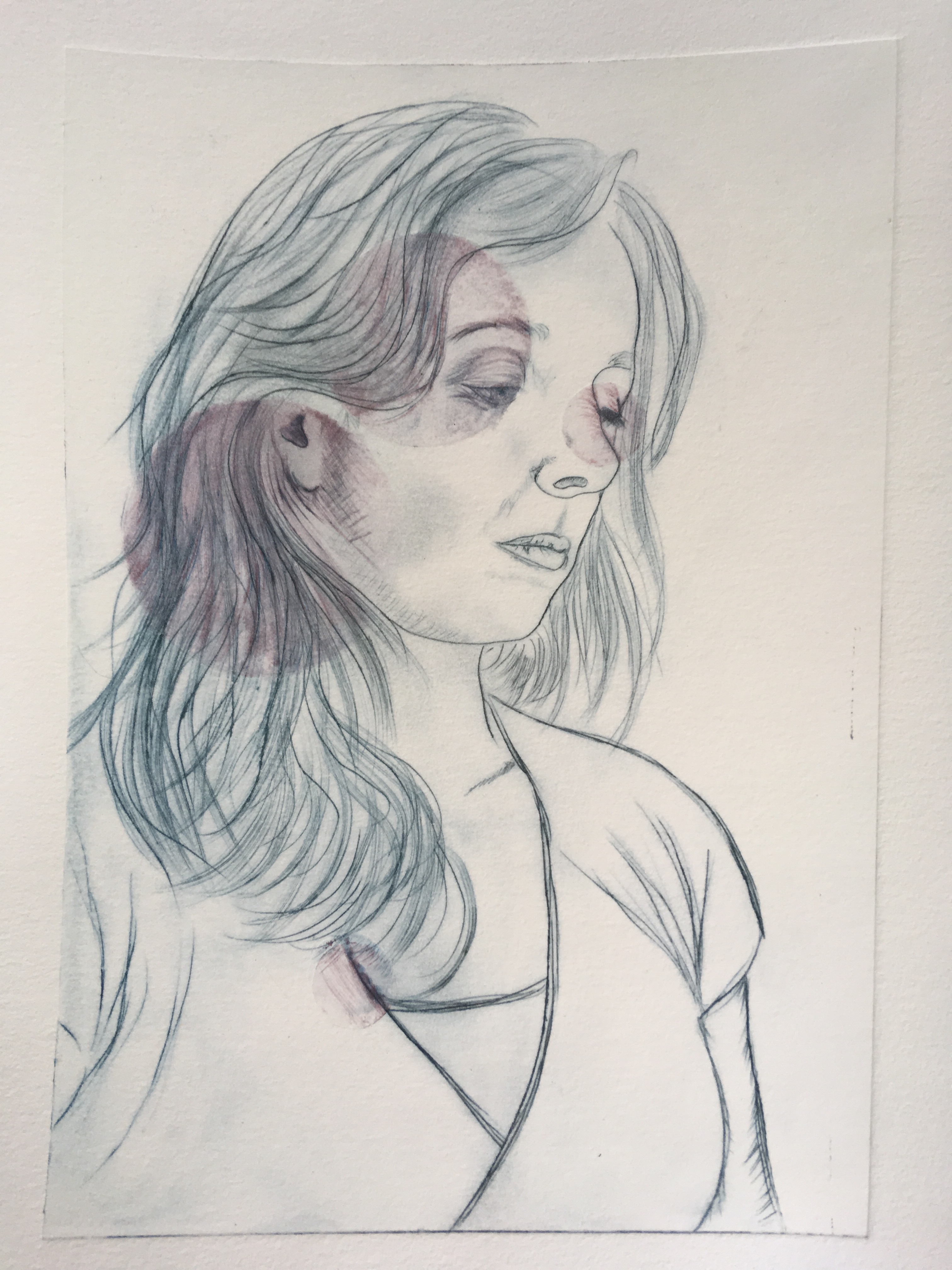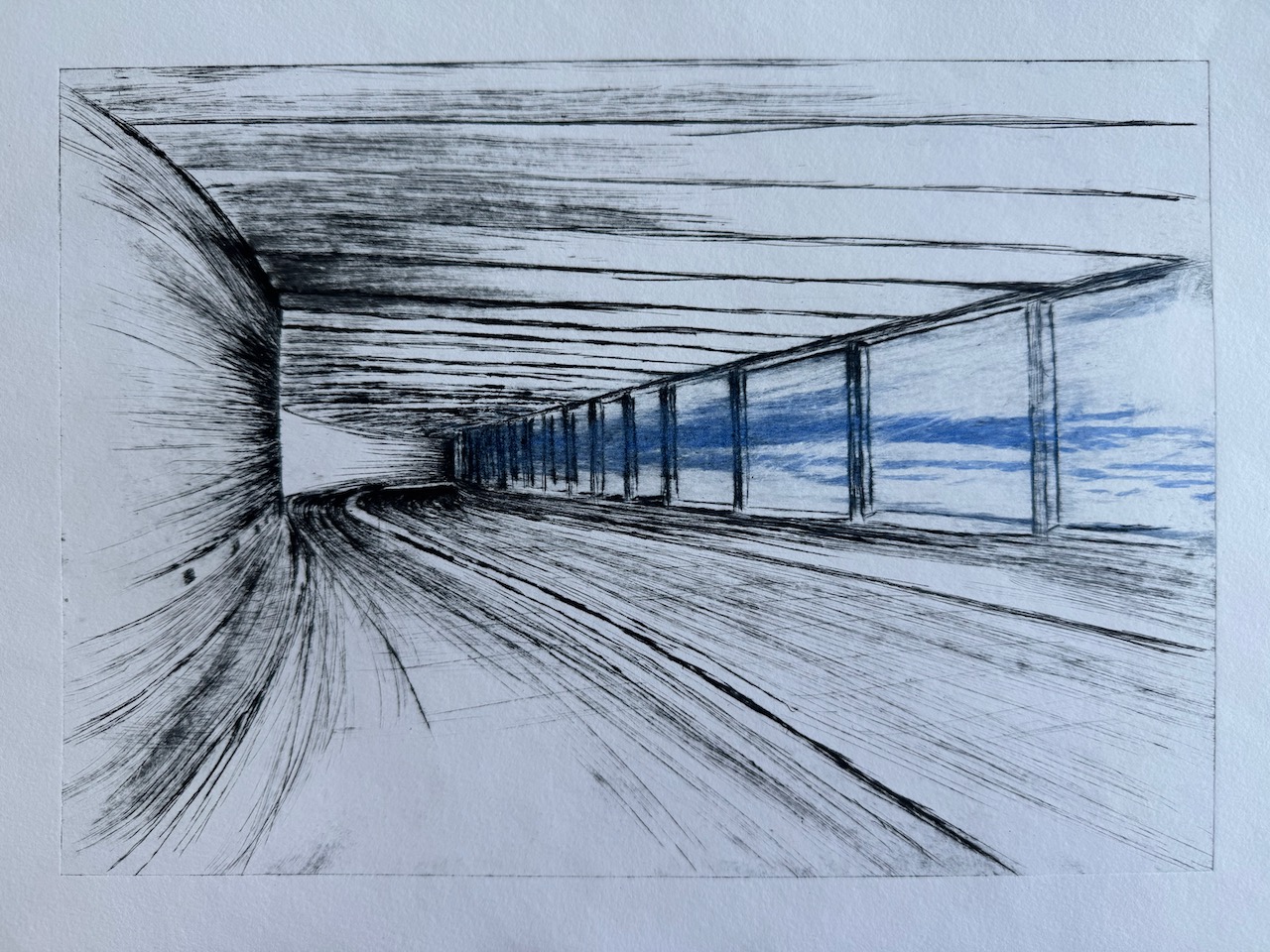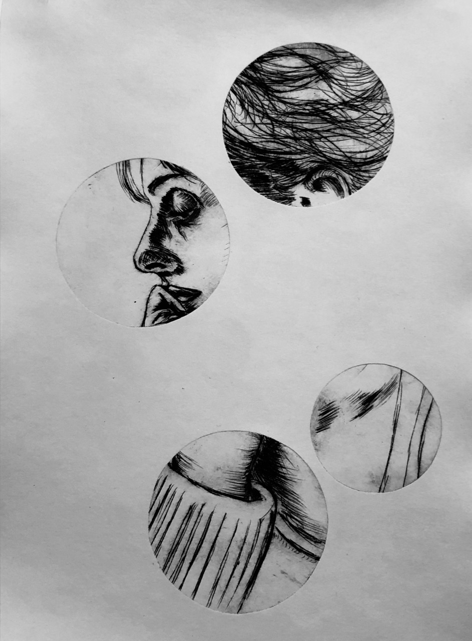 Etsen staat dicht bij tekenen; toch geeft de mogelijkheid om tijdens het drukproces te spelen met toon en kleur het een geheel nieuwe dimensie. Recent ben ik begonnen met experimenteren met lagen en het verkennen van manieren om andere technieken te combineren met het etsen.