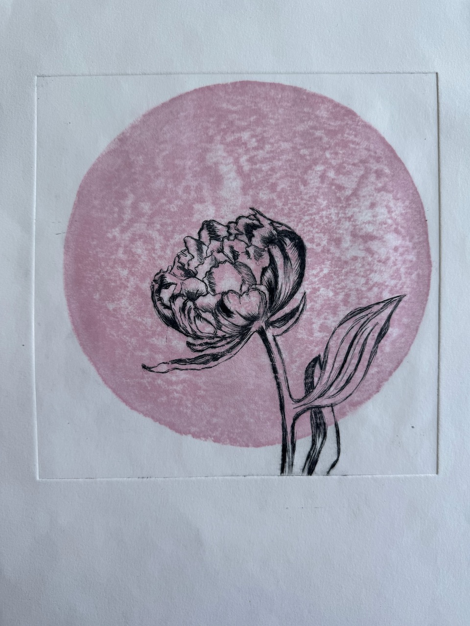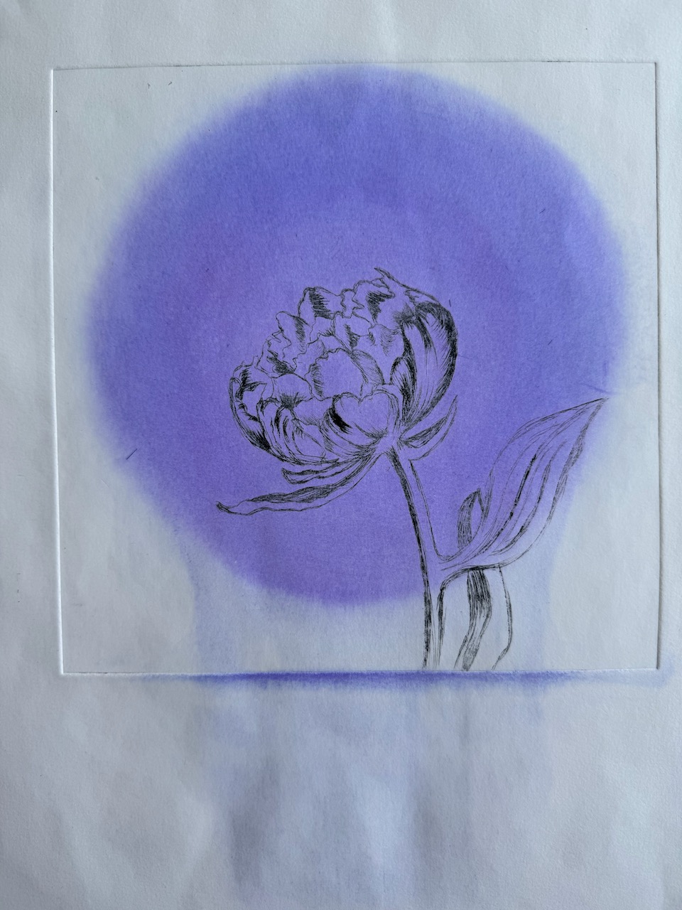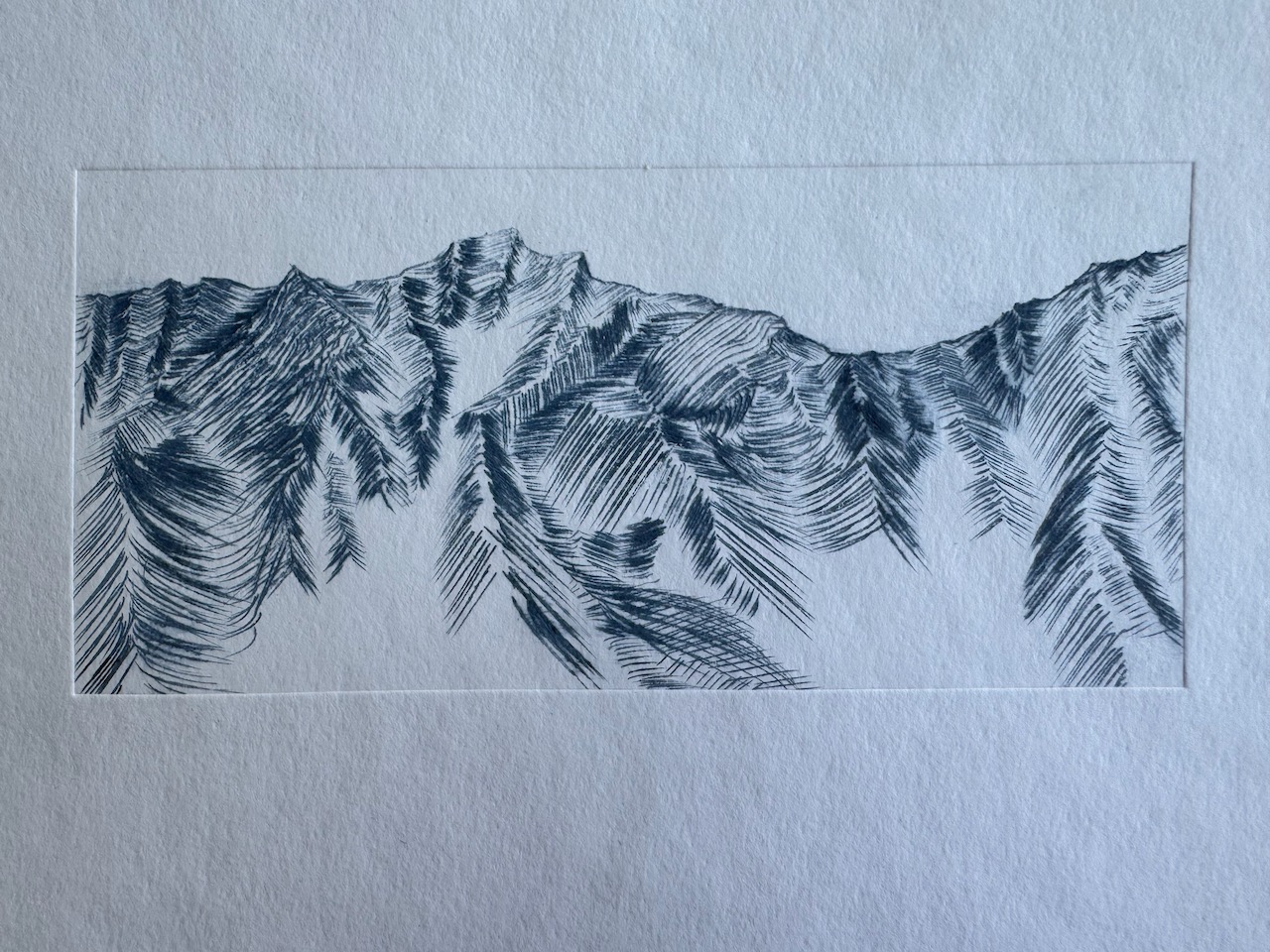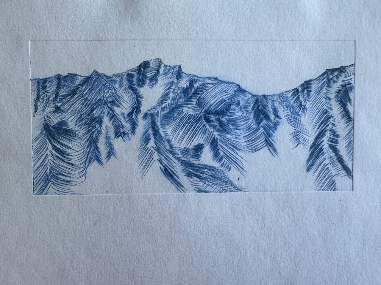 Etching is closely related to drawing; however, the ability to play with tone and colour during the printing process gives it an entirely different dimension. I have recently begun experimenting with layering and exploring ways to incorporate other techniques with the etching process.