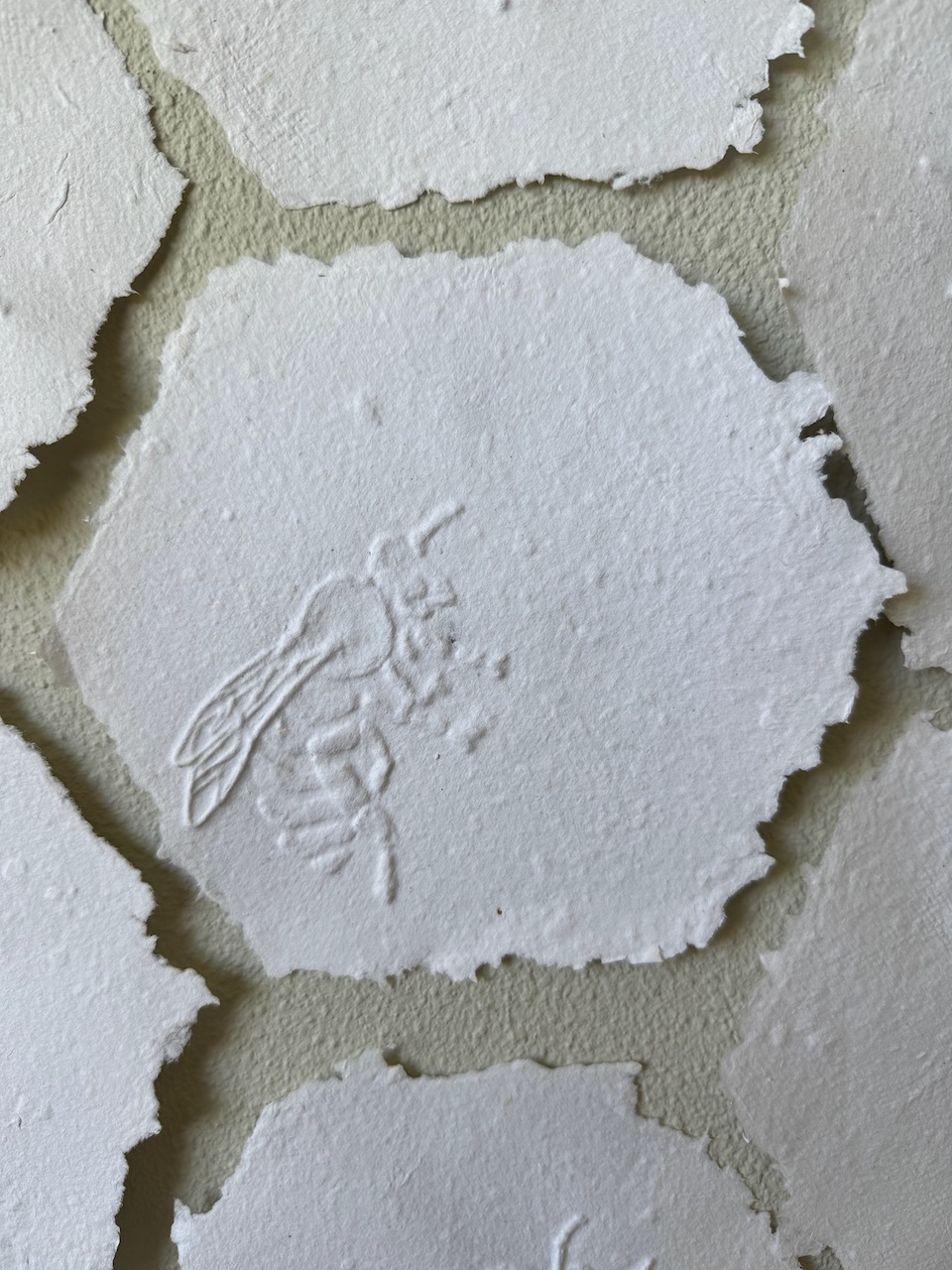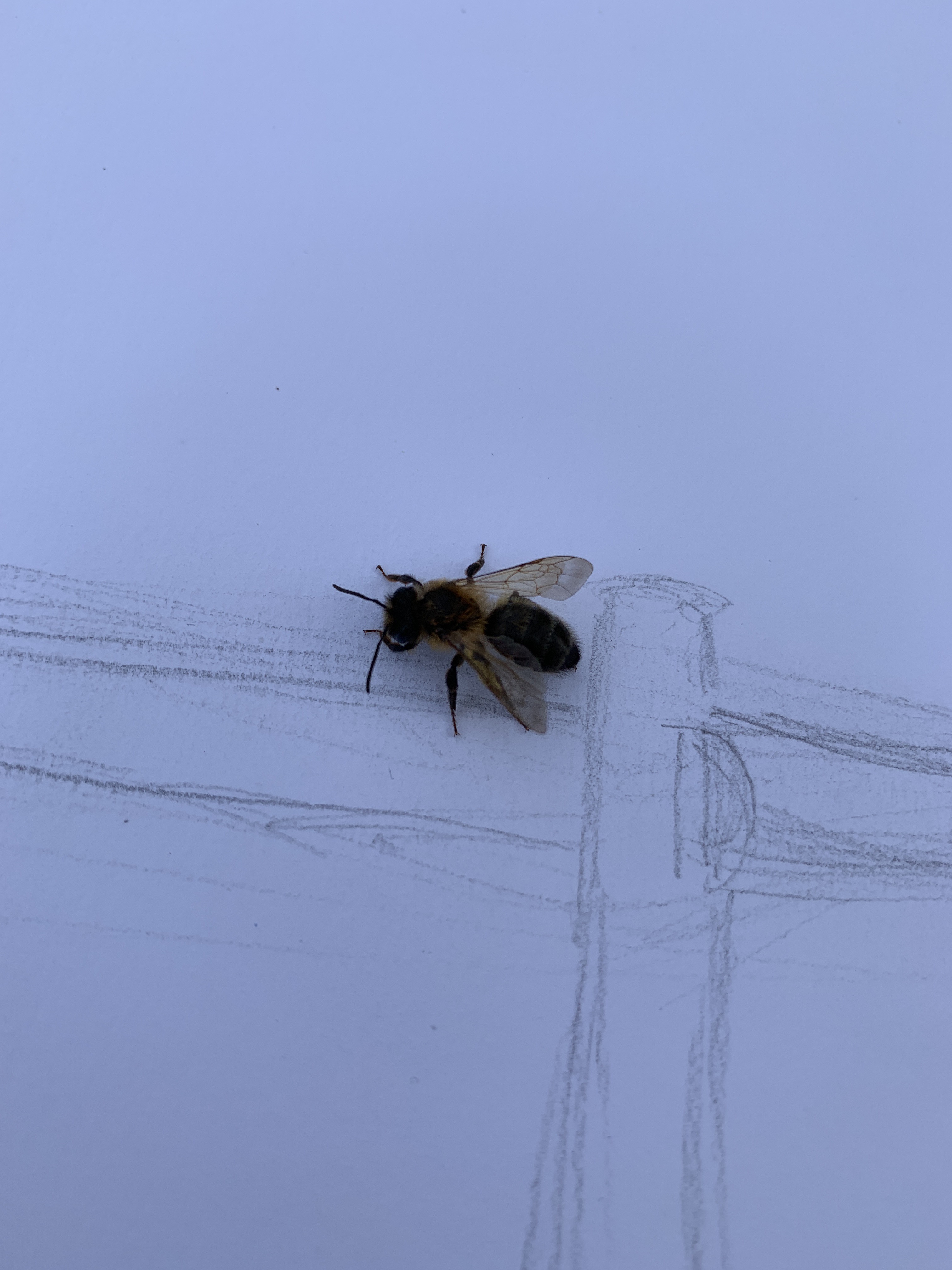The bee, furry and hard working. Bees are a source of fascination, to me and to other artists, poets and writers. Diving into this topic it becomes clear why: Bees symbolise hard work, discipline, and cooperation, representing the balance between individual and collective purpose. Bees are vital pollinators representing the interconnectedness of ecosystems. Worker bees give their lives for the hive, representing themes of selflessness and service. They produce honey, but can also sting—a duality rich with meaning.