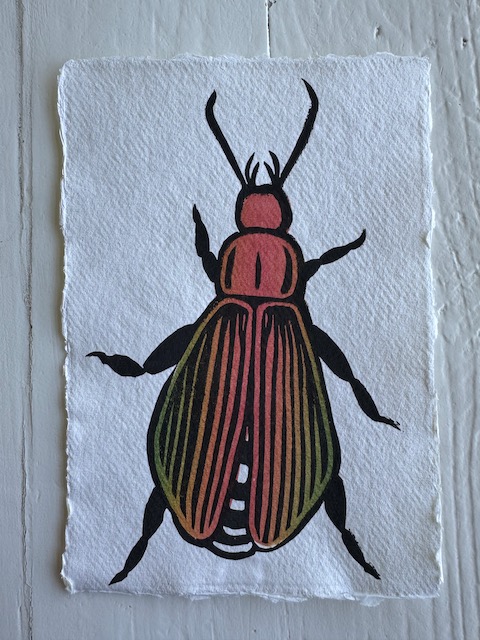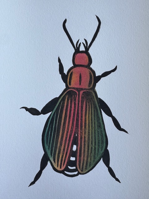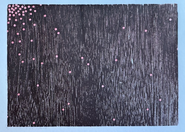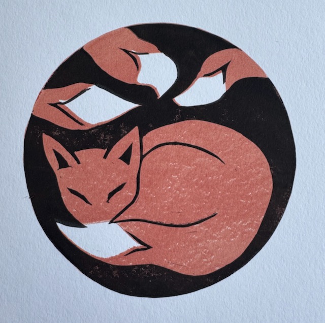 Om een of andere reden, waarvoor ik geen duidelijke verklaring heb, houd ik van de uitstraling van lino- en houtsnedes. Ik geniet van het proces van het maken van het beeld, vooral van het snijden, en van het drukken op de pers.
