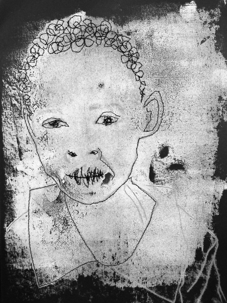 In these three portraits of a boy, whom I met in Afrika, I have been experimenten with mixed media, paper, ink and thread. By doing so I’m experimenting with the expressionistic possibilities. In this case limited to two colours, black and white.