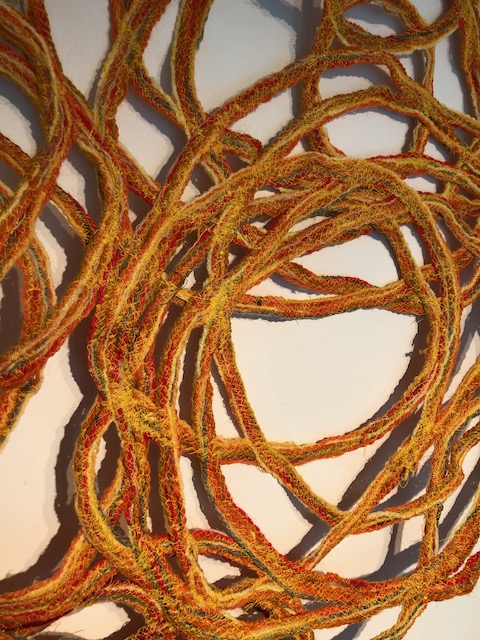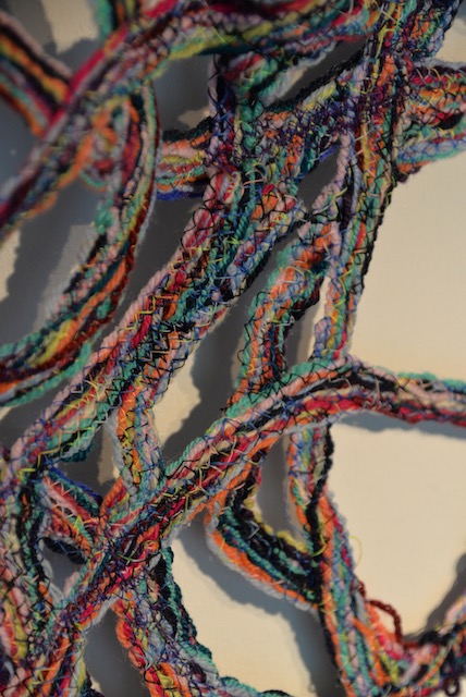 The textile artsworks have been made by hand by reusing threads in a manner as climate neutral as possible.