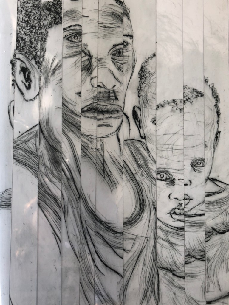 Distorted are a series of preparatory etches made before printing the larger work: a sense of place. Exploring how the representation of ourselves is often distorted to others, but maybe also to ourselves?
