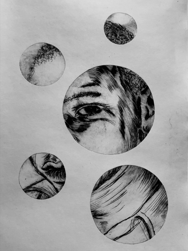 Een serie werk gericht op het onderzoeken van emotie, (zelf)censuur en gedeeltelijk verhalen. Dit door middel van portretten gedrukt op papier.